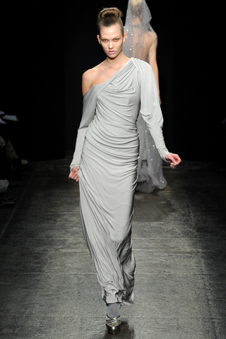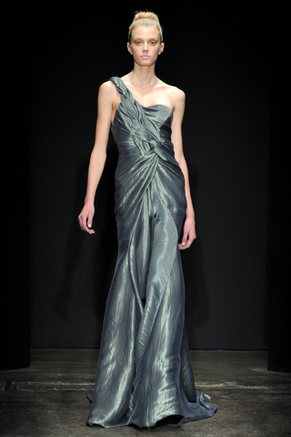 Los vestidos de fiesta de Donna Karan presentados en Nueva York en la Semana de la Moda 2011 son de tonalidades suaves y tejidos ligeros, drapeados y muy favorecedores.